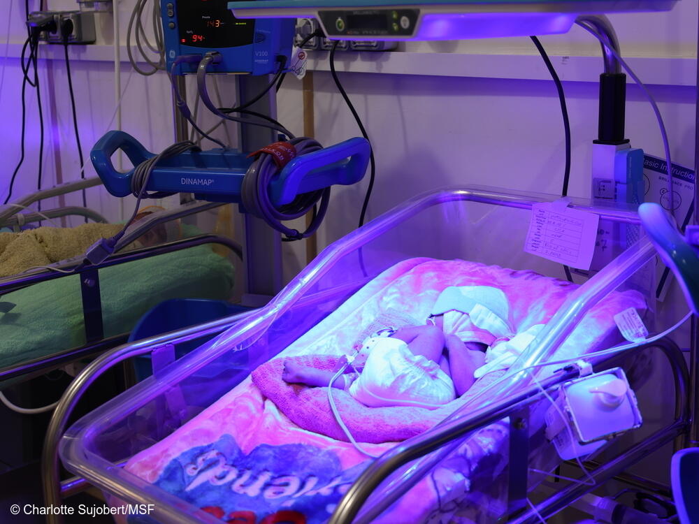 Un recién nacido recibe cuidados en la unidad de terapia intensiva neonatal del hospital Al-Salam. Khamer, Yemen.