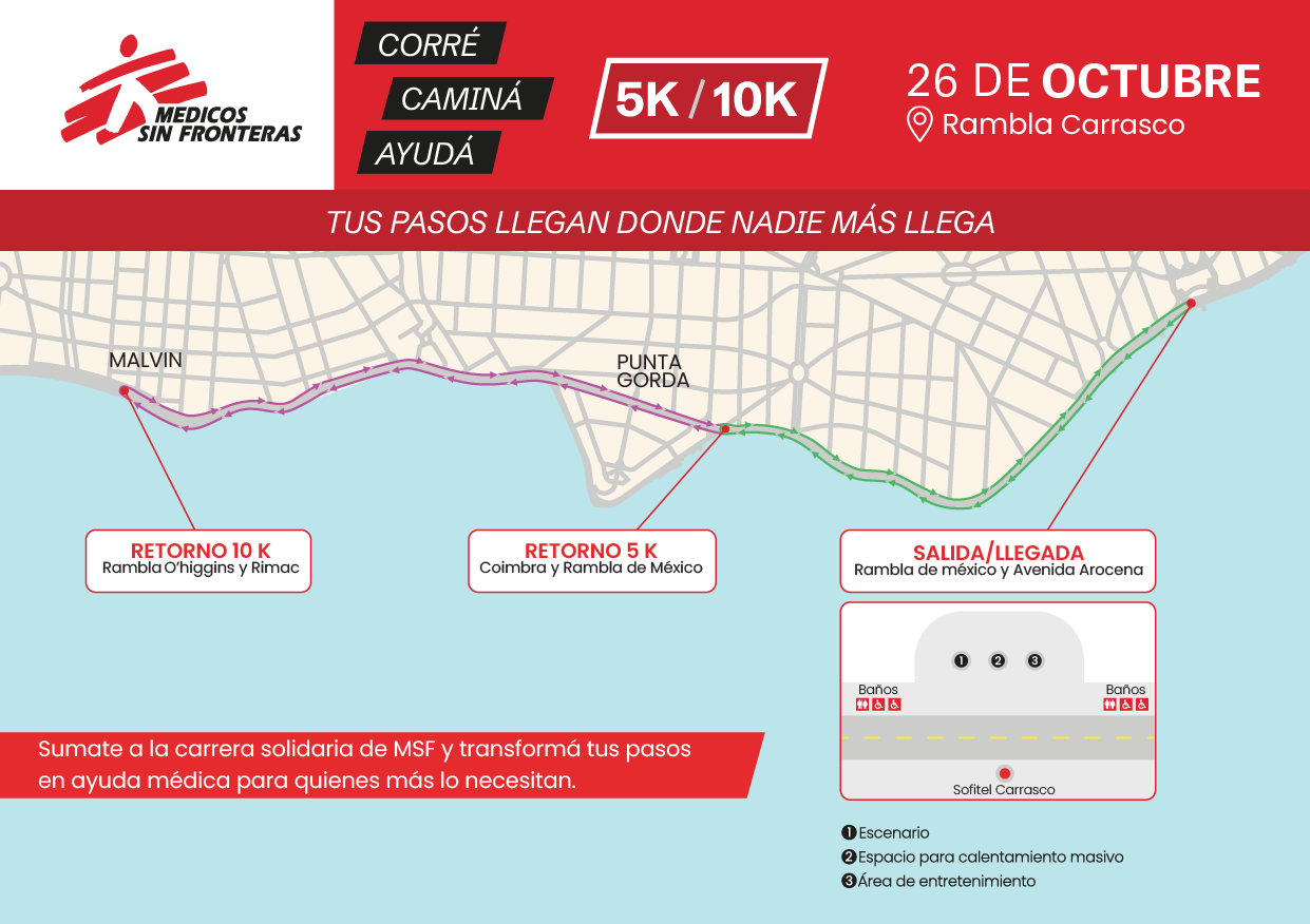 Médicos Sin Fronteras celebra sus 10 años en Uruguay con una carrera solidaria el 26 de octubre en la Rambla de Carrasco. Bajo el lema «Corré, caminá, ayudá», invitamos a transformar cada paso en apoyo a quienes más lo necesitan.