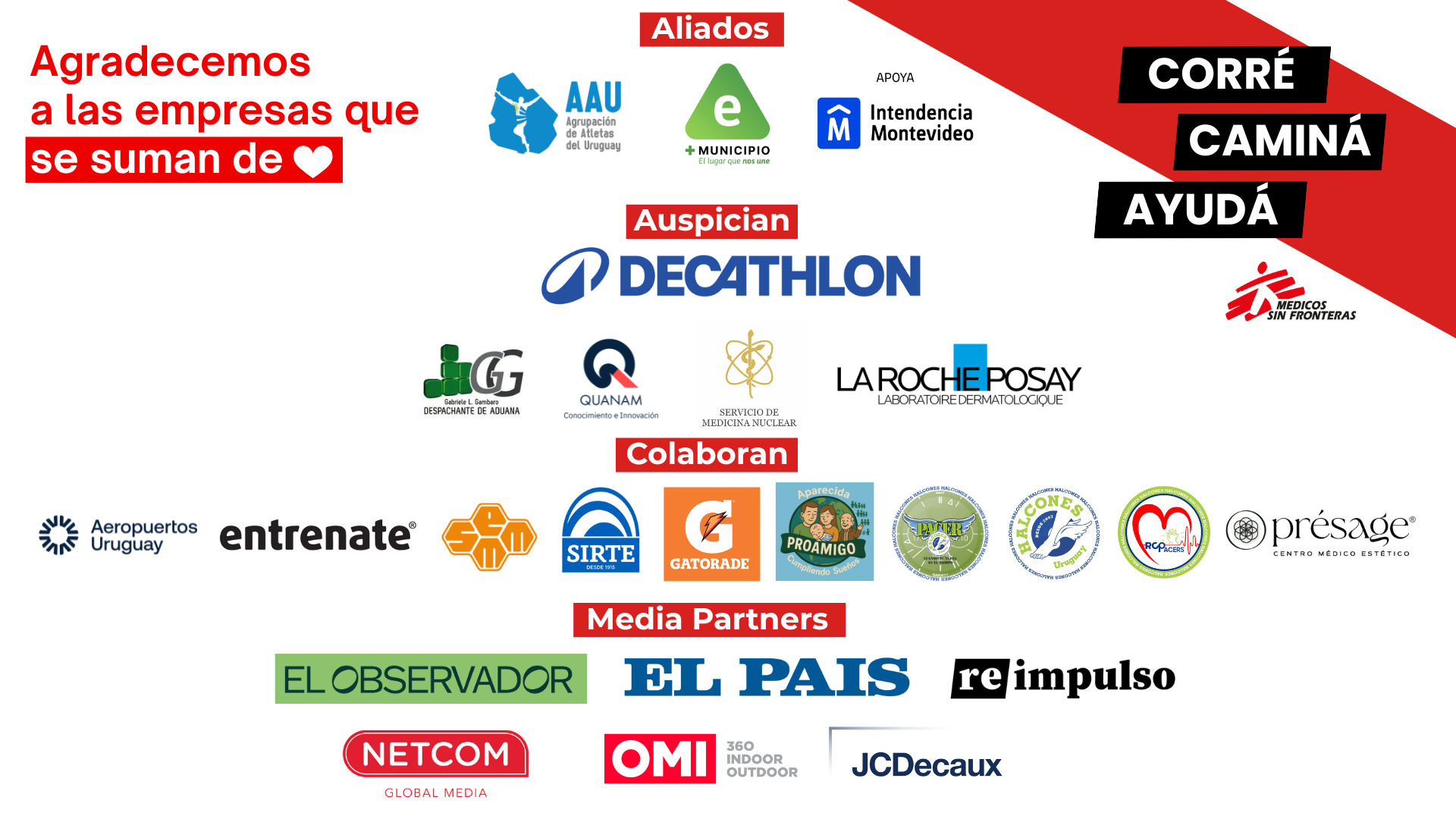 El evento contó con el apoyo de la Agrupación de Atletas del Uruguay, el Municipio E y la Secretaría de Deporte de la Intendencia de Montevideo, además del respaldo de empresas, medios y organizaciones comprometidas con la causa.